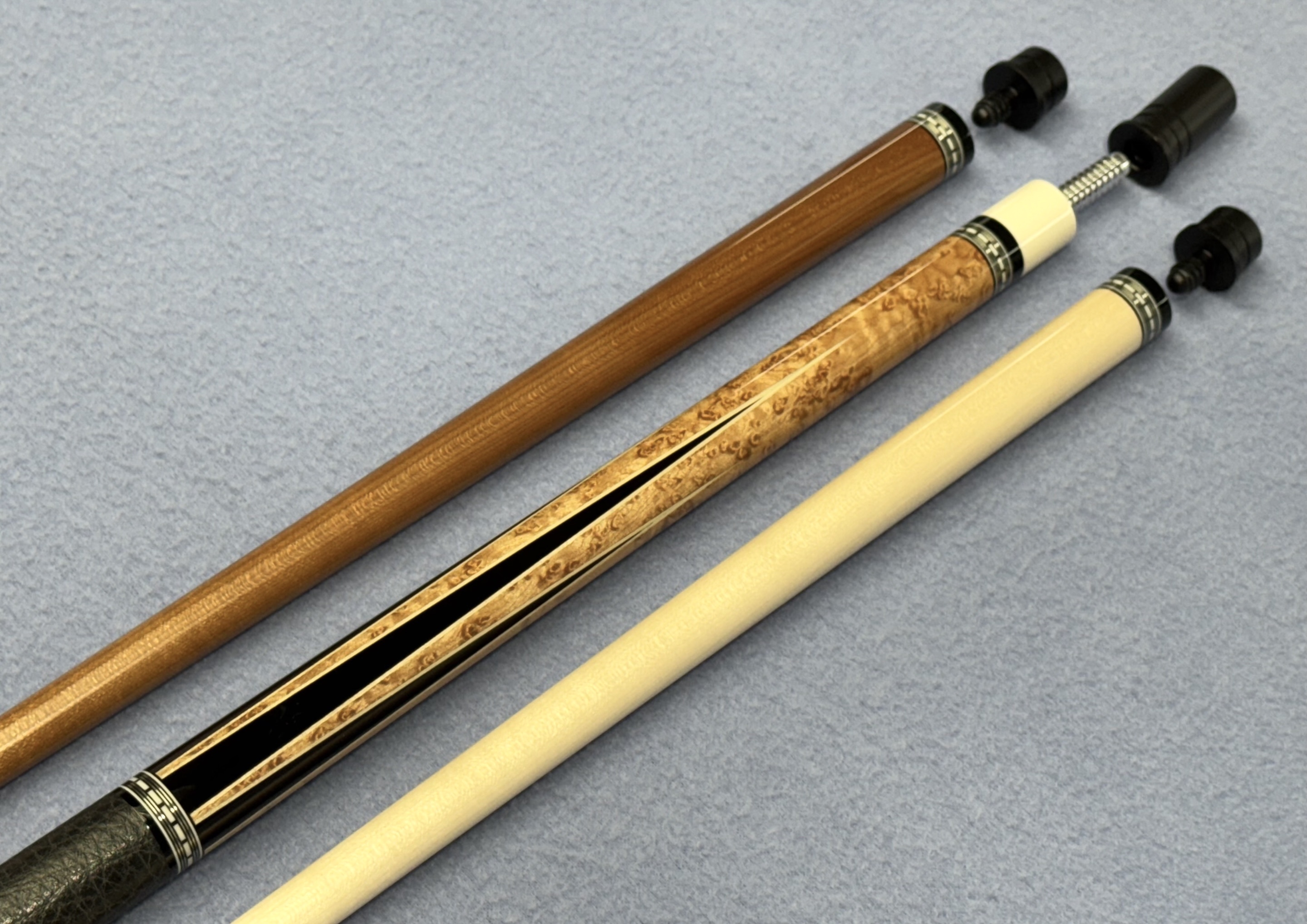 From American Falls, ID. We're very pleased to offer Jim Pierce custom cues. His build quality is super clean and simply outstanding. Top tier custom cues at lower than top tier prices--superb custom cue value. Pierce cues are .841" at joint and 1.24" at buttcap.