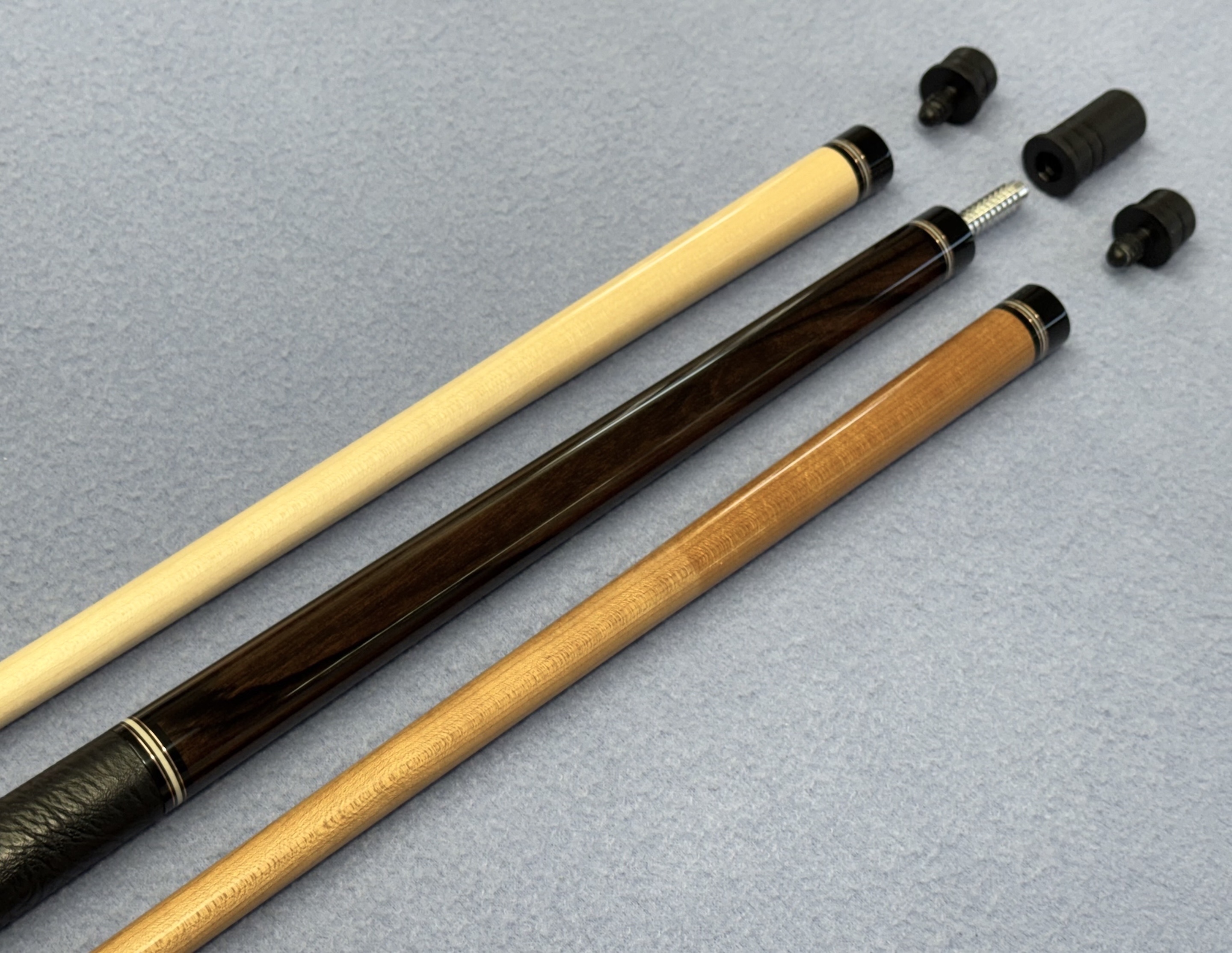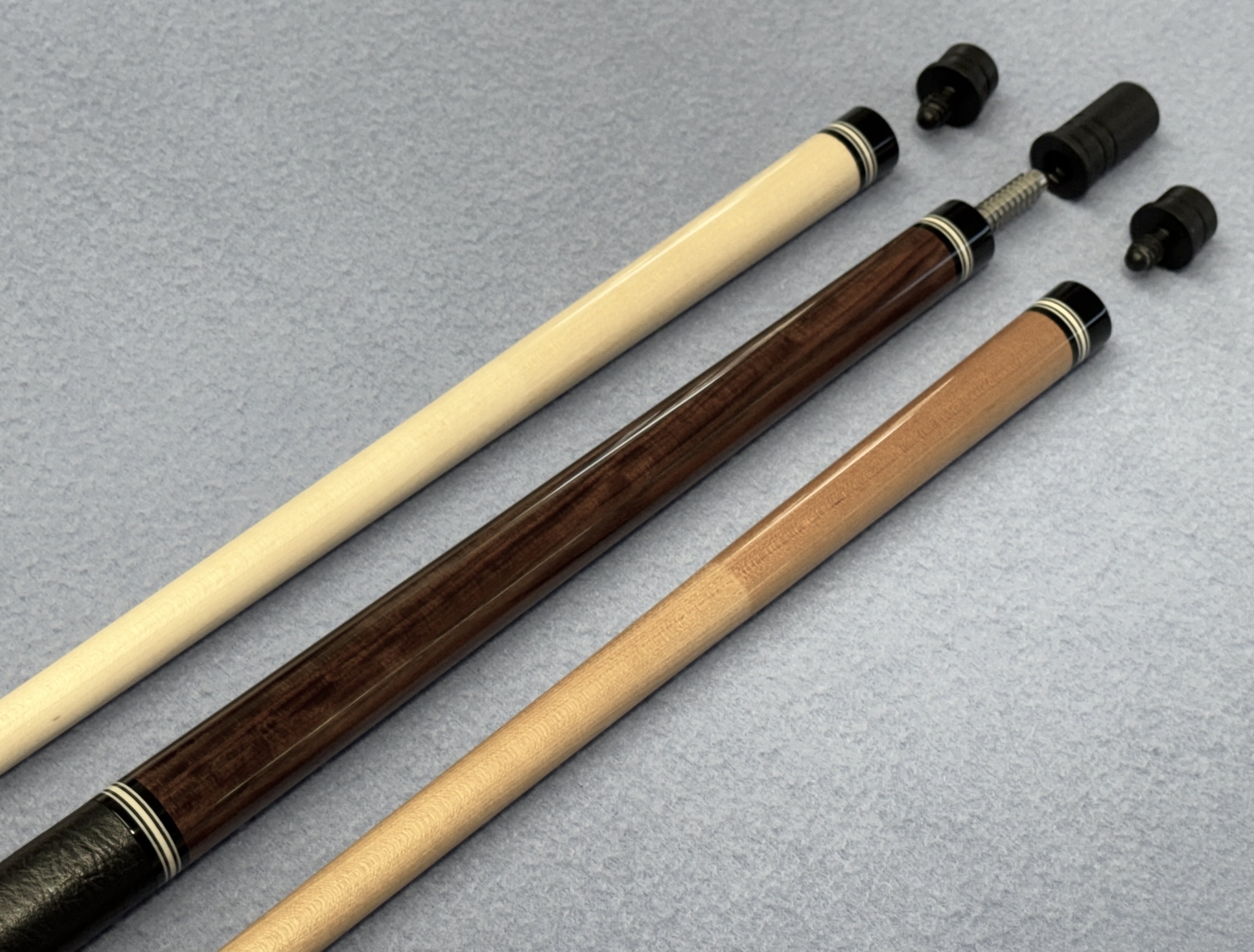 We're pleased to offer cues made by Steve Serna of La Verne, California. Steve started out in 2016 apprenticing the craft of making cues with Ariel Carmeli. In 2024, Ariel relocated to Virginia. Because of Steve's recognized ability and work ethic, he began assisting at the award winning cue workshop of Eddie Cohen. Steve produces a very limited number of cues per year--mainly deluxe merry widow cues made with attractive exotic hardwoods and deco ringsets. The cues are made with dimensions similar to his teachers. Excellent quality and value in each Steve Serna cue!
